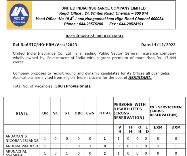 UIIC Recruitment 2024: युनाइटेड इंडिया इंश्यूरेन्स में 300 असिस्टेंट की भर्ती अधिसूचना जारी, आवेदन इस दिन से