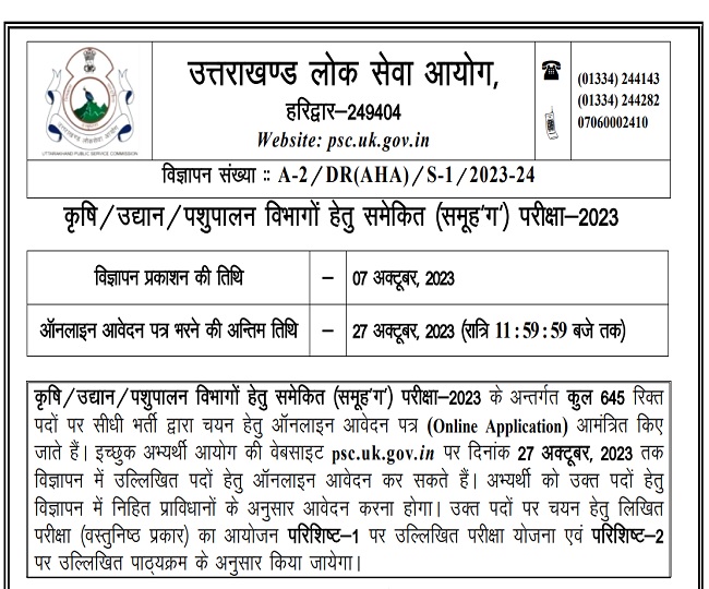 UKPSC Recruitment 2023: उत्तराखण्ड कृषि, उद्यान और पशुपालन विभागों में 645 ग्रुप सी पदों की भर्ती