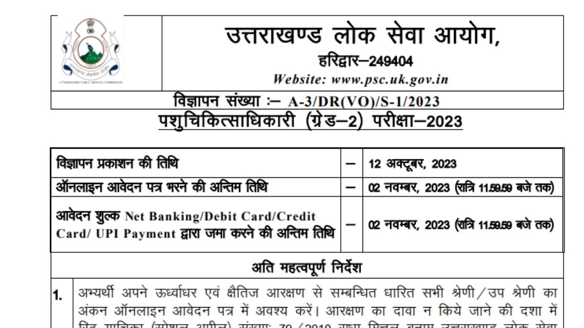 UKPSC VO Recruitment: उत्तराखंड पशुचिकित्सा अधिकारी ग्रेड 2 भर्ती परीक्षा के लिए इस डेट तक करें आवेदन