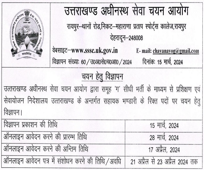 UKSSSC Recruitment 2024: उत्तराखंड में सहायक भंडारी के रिक्त पदों पर निकली भर्ती, इस डेट तक भर सकते हैं फॉर्म