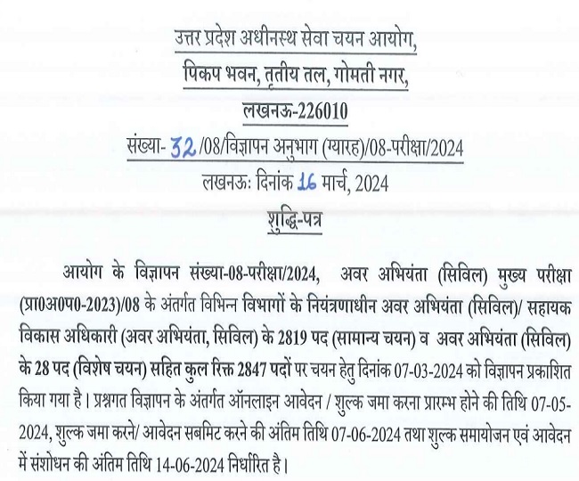 UPSSSC JE Recruitment 2024: उत्तर प्रदेश में जूनियर इंजीनियर सिविल भर्ती के लिए नोटिफिकेशन जारी, इस डेट से शुरू होंगे आवेदन
