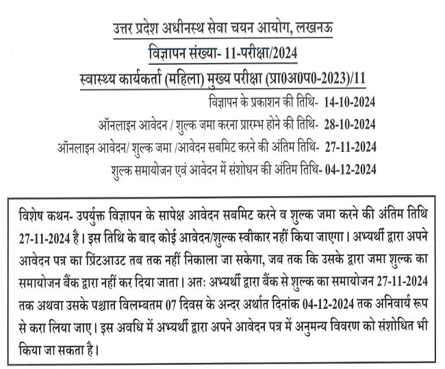 UPSSSC: उत्तर प्रदेश फीमेल हेल्थ वर्कर भर्ती के लिए आवेदन हुए शुरू, पात्रता-एप्लीकेशन प्रॉसेस सहित अन्य डिटेल यहां से करें चेक