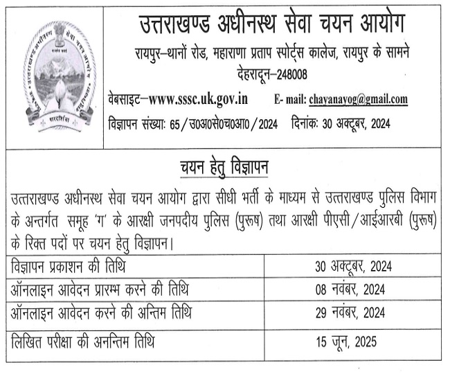 Uttarakhand Police Constable Vacancy 2024 Notification link