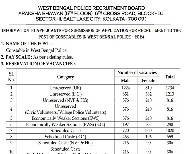 West Bengal Police Recruitment 2024 Notification डाउनलोड करने के लिए यहां क्लिक करें।