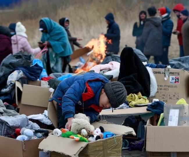 अपने बचपन को ढूंढता, अपने खिलौने को ढूंढता हुआ बच्चा? शायद यह तस्वीर भी यही कहने कि कोशिश कर रही है।जब ये मासूम यूक्रेन से मेदका बॉर्डर पार कर पोलैंड में दाखिल हुआ तो वह रिफ्यूजी के लिए बने 'क्लोथ डोनेशन प्वाइंट' पर अपने खिलौने तलाश रहा था। तस्वीर 28 फरवरी की है।