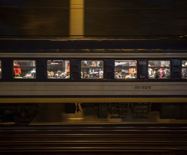 युद्ध शुरू होते ही शरणार्थी कार, बस, ट्रेन और पैदल यूक्रेन निकलकर भागने लगे। युद्ध में लड़ने की उम्र वाले पुरुषों को देश की रक्षा करने के लिए आगे आने का आदेश दिया गया था। (फोटो:एपी)