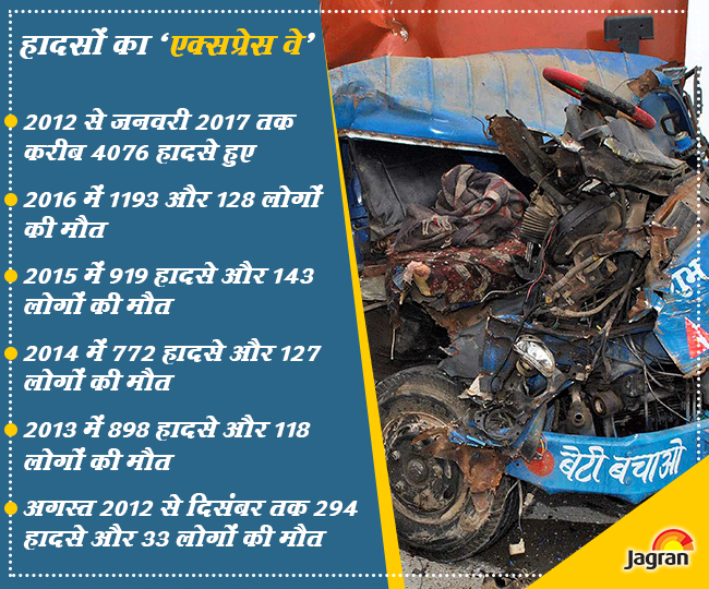 हादसों के इस एक्सप्रेस का एक दर्दनाक सच यह भी है कि जब से यह चालू हुआ है तब से लेकर जनवरी 2017 तक इस पर करीब 4076 हादसे हुए, जिसमें करीब 548 लोगों की मौत हुई है। साल दर साल यहां पर होने वाले हादसों में तेजी देखने को मिली है। 2015 की तुलना में इस एक्सप्रेस वे पर 2016 में हुए हादसों में करीब 30 फीसद की तेजी दर्ज की गई थी। लेकिन यह भी सही है कि इस दौरान हुए हादसों में 2015 की तुलना में लोगों की जान कम गई थी। 2016 में इस एक्सप्रेस वे पर करीब 1193 एक्सीडेंट की घटनाएं हुईं थीं। इनमें करीब 128 लोगों की मौत हुई थी। वहीं 2015 में यहां पर 919 हादसे हुए थे जिसमें 143 लोगों की मौत हो गई थी।