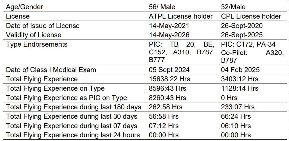 (दोनों पायलट के उड़ान का अनुभव)