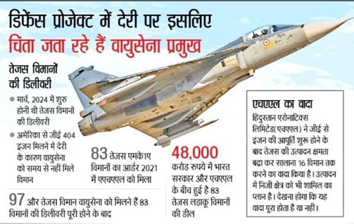 - मार्च, 2024 में शुरु होनी थी तेजस विमानों की डिलीवरी