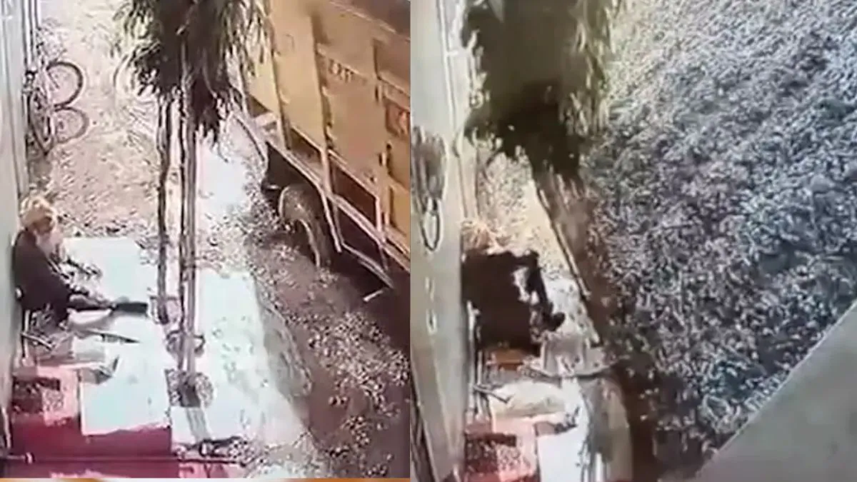 घर के बाहर धूप सेंक रहे बुजुर्ग पर पलटा गिट्टी से भरा ट्रक (स्क्रीनग्रैब)