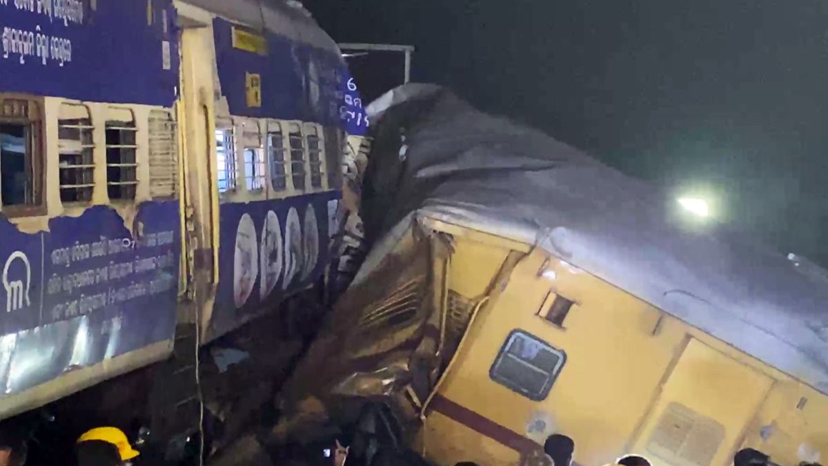#WATCH | Drone visuals of the train collision in Vizianagaram, Andhra Pradesh. Rescue operations underway pic.twitter.com/ou24l03HP1