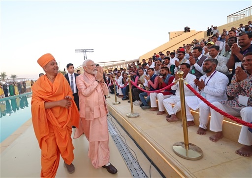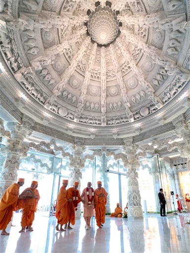 मंदिर का उद्घाटन करने के बाद प्रधानमंत्री ने मंदिर का निर्माण करने वाले कारीगरों से मुलाकात की। गुजरात और राजस्थान के करीब दो हजार कारीगरों ने मंदिर निर्माण में योगदान दिया है। प्रधानमंत्री ने शुरुआत से लेकर पूरा होने तक मंदिर निर्माण में शामिल रहे स्वयंसेवकों एवं इसमें काम में योगदान देने वाले प्रमुख लोगों से भी भेंट की।