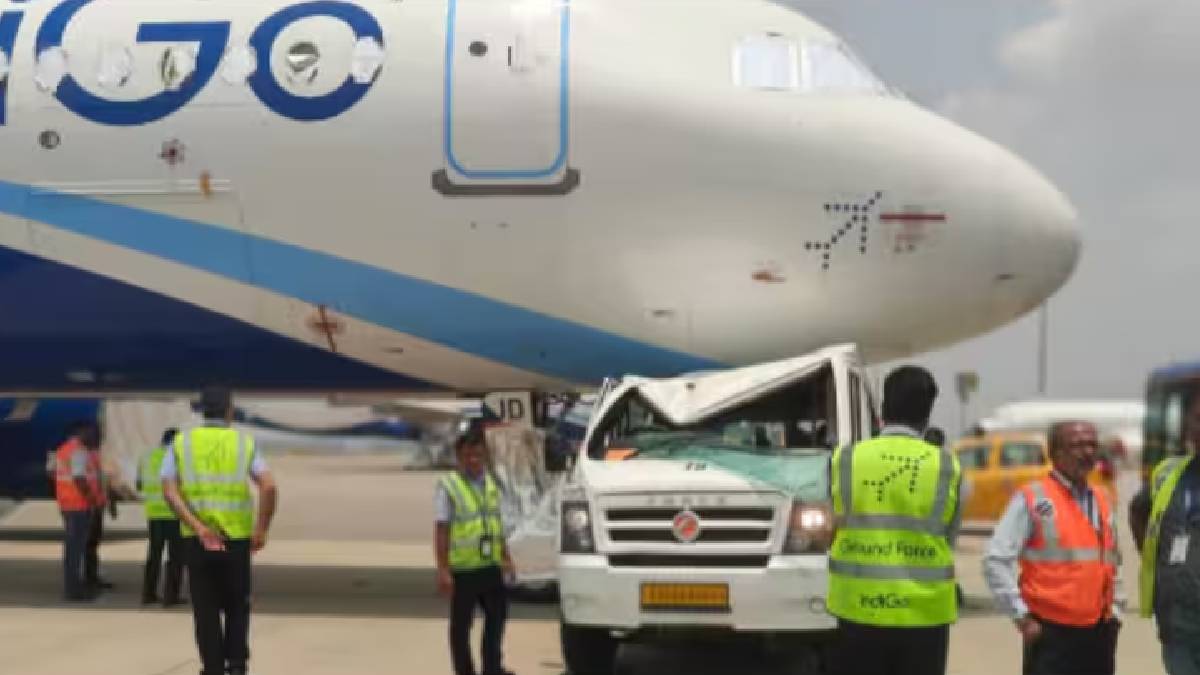 आज यानी 18 अप्रैल 2025 की दोपहर तकरीबन 12:15 बजे का है। रिपोर्ट्स के अनुसार मिनी बस किसी थर्ड पार्टी एजेंसी की थी। इंडिगो का एयरक्राफ्ट पार्किंग में खड़ा था और मिनी बस वहीं से गुजर रही थी। अचानक मिनी का संतुलन बिगड़ा और बस ने प्लेन के अंडरकैरेज (निचले हिस्से) को टक्कर मार दी।