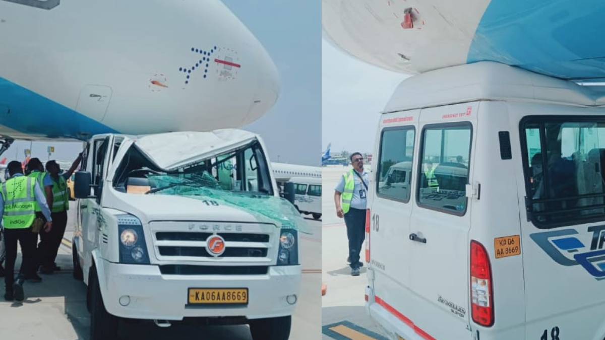 बेंगलुरु एयरपोर्ट पर खड़े प्लेन से टकराई मिनी बस, हादसे से स्टाफ में मची खलबली; तस्वीरें आई सामने