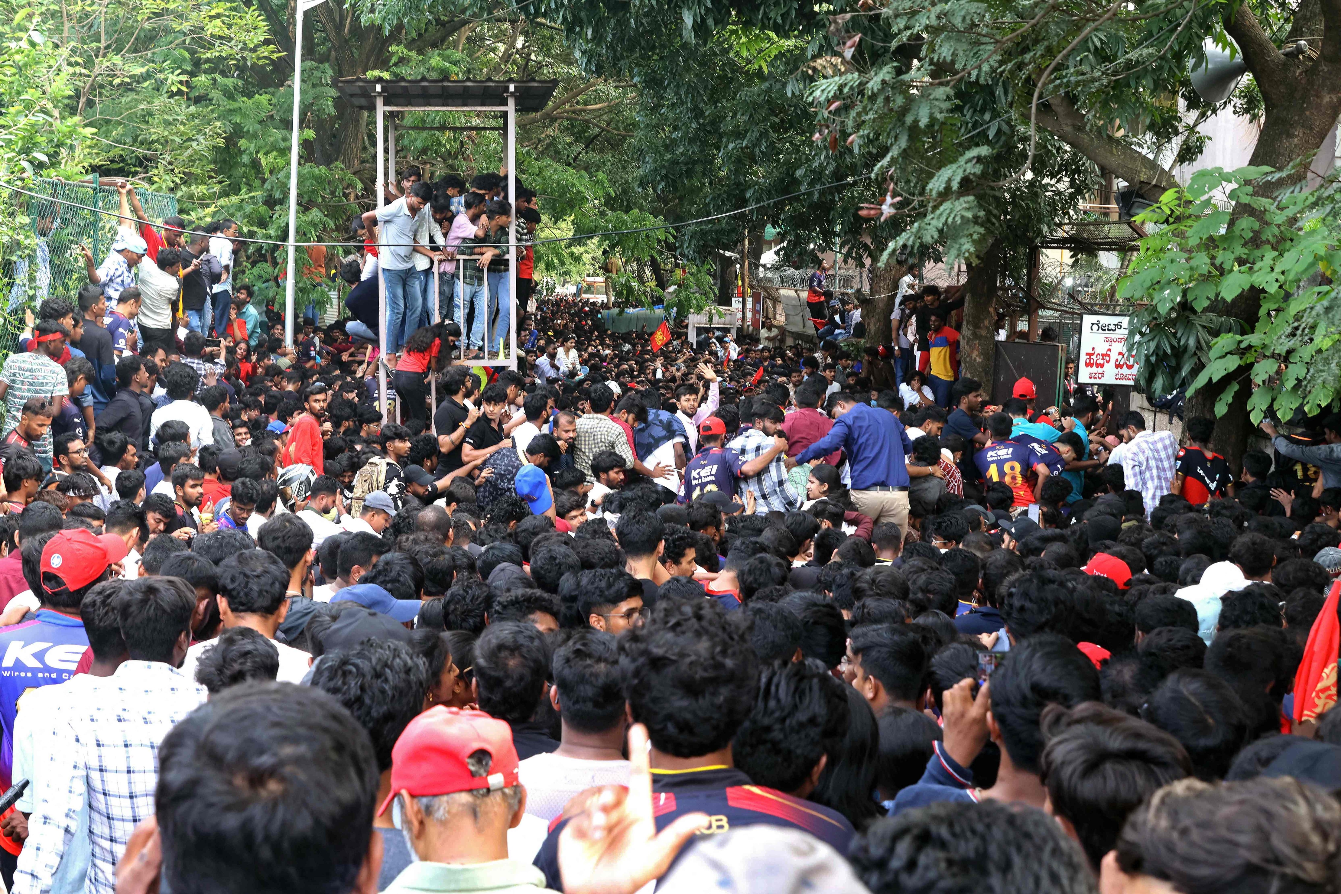 पुलिस को भीड़ को नियंत्रित करने में काफी मशक्कत करनी पड़ी, क्योंकि उसी समय बड़ी संख्या में क्रिकेट प्रेमी स्टेडियम में घुसने की कोशिश कर रहे थे। बेंगलुरु पुलिस की ओर से जारी ट्रैफिक एडवाइजरी के अनुसार, चिन्नास्वामी स्टेडियम में केवल वैध टिकट और पास वाले लोगों को ही प्रवेश दिया जा रहा था। चूंकि स्टेडियम के पास सीमित पार्किंग सुविधा उपलब्ध है, इसलिए कार्यक्रम में शामिल होने वाले लोगों को सार्वजनिक परिवहन और मेट्रो का उपयोग करने की सलाह दी गई थी।