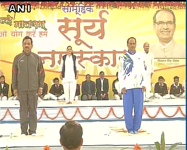 Mass 'Surya Namaskar' session in Bhopal, Chief Minister Shivraj Singh Chouhan attends. pic.twitter.com/GiIItsB2BV