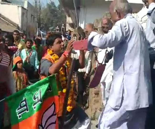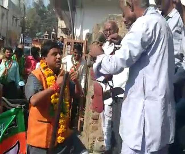 वोट मांगने पहुंचे भाजपा उम्मीदवार तो जनता ने जूतों की माला पहनाकर किया स्वागत