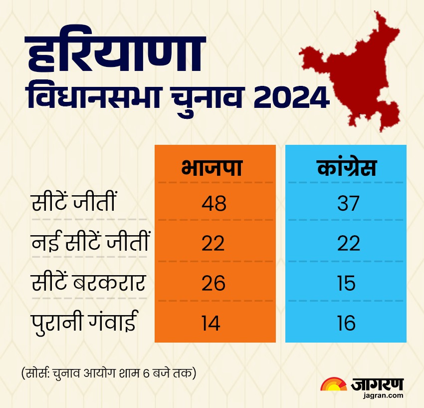 बता दें कि 2019 के विधानसभा चुनाव में भाजपा और जजपा ने गठबंधन में सरकार बनाई थी। जजपा सुप्रीमो दुष्यंत चौटाला डिप्टी सीएम बने थे। मार्च 2024 में भाजपा ने जजपा से गठबंधन तोड़ दिया और अकेले चुनाव लड़ने का फैसला किया। 2019-2024 तक जजपा के साथ गठबंधन सरकार चलाने का फायदा भाजपा को इस चुनाव में मिला।