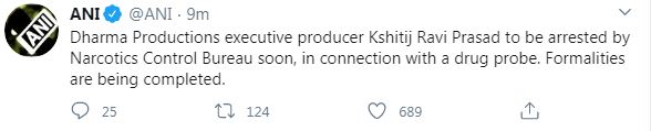 सुशांत सिंह राजपूत की मौत से जुड़े ड्रग के मामले में धर्मा प्रोडक्शन के कार्यकारी निर्माता क्षितिज रवि प्रसाद को जल्द ही नारकोटिक्स कंट्रोल ब्यूरो द्वारा गिरफ्तार किया जाएगा। फिलहाल इसकी औपचारिकताएं पूरी की जा रही हैं।
