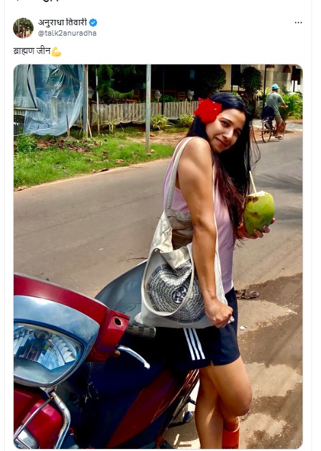दरअसल, अनुराधा तिवारी ने हाल ही में अपनी एक फोटो सोशल मीडिया हैंडल पर शेयर किया, जिसमें वो अपना मस्लस दिखा रही हैं, हालांकि विवाद फोटो पर नहीं बल्कि कैप्शन पर छिड़ गया। उन्होंने फोटो के साथ कैप्शन में 'ब्राह्मण जीन' लिखा।