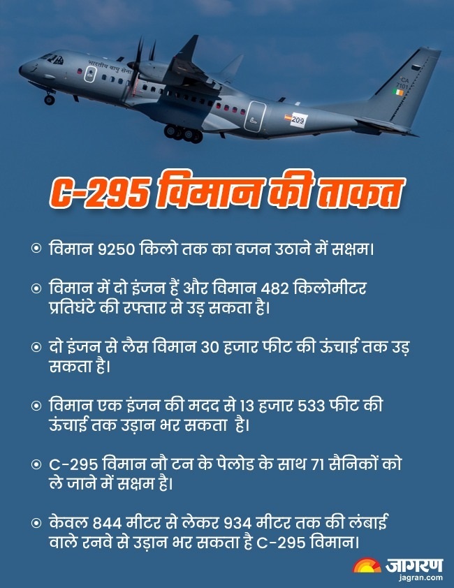 - सी 295 विमान पैराशूट के सहारे सैनिकों को उतारने और सामान गिराने के लिए काफी उपयोगी हो सकता है।