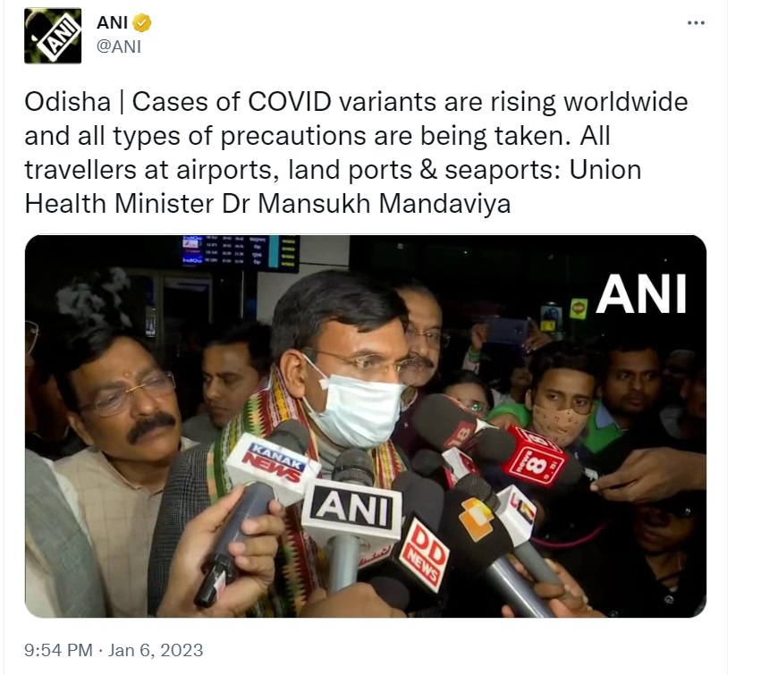 केंद्रीय मंत्री मनसुख मंडाविया ने बताया कि दुनियाभर में कोरोना के नए वेरिएंट के मामले बढ़ रहे हैं और हर तरह की सावधानियां बरती जा रही हैं। उन्होंने कहा कि देश के सभी एयरपोर्ट्स पर आने वाले यात्रियों का RTPCR टेस्ट किया जा रहा है।