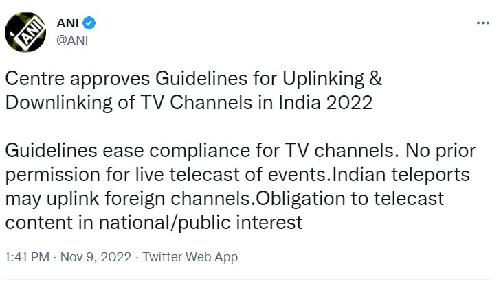 देश में टीवी चैनलों के लिए जारी किए गए नए दिशानिर्देश, सीधा प्रसारण के लिए पहले से नहीं लेनी होगी पूर्व अनुमति
