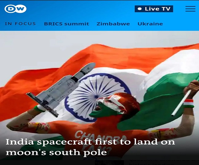 7. फ्रांस 24 ने कहा, भारत चंद्रमा के दक्षिणी ध्रुव पर अंतरिक्ष यान उतारने वाला पहला देश बन गया है।