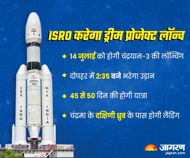 नई दिल्ली, ऑनलाइन डेस्क। Chandrayaan-3 Mission: 14 जुलाई 2023 को ISRO अपने ड्रीम प्रोजेक्ट Chandrayaan-3 को लॉन्च करने जा रहा है। 14 जुलाई को चंद्रयान-3 2:35 बजे चंद्रमा की ओर जाने के लिए पृथ्वी से उड़ान भरेगा। बता दें कि करीब 45 से 50 दिन की यात्रा करने के बाद चंद्रयान-3 चंद्रमा के दक्षिणी ध्रुव के पास लैंडिंग होगी।