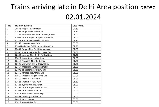 कोहरे की वजह से लेट से चल रही 26 ट्रेनें