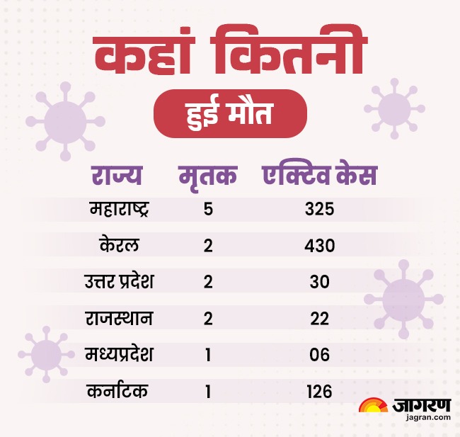 देश के अलग-अलग राज्यों में कोविड से कुल 13 मौते हुई हैं। महाराष्ट्र, राजस्थान, पश्चिम बंगाल, कर्नाटक और मध्यप्रदेश में कुल 11 मरीजों की मौत हो चुकी है।