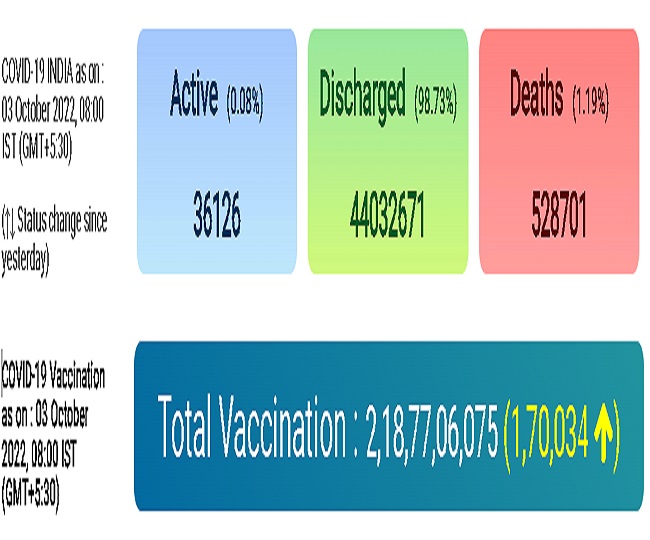 आपको बता दें कि देश में कोरोना वैक्सीनेशन की संख्या भी लगातार बढ़ रही है। देश में अब तक 218 करोड़ 77 लाख 6 हजार 75 लोगों को कोरोना की डोज जा चुकी है।