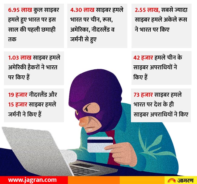 भारतीय हैकरों ने भी पांच देशों पर साइबर हमले किए हैं। भारत को अपने देश के साइबर अपराधियों के 73 हजार हमले झेलने पड़े। इस साल छह महीने में देश पर इस तरह के 6.95 लाख हमले हुए हैं।