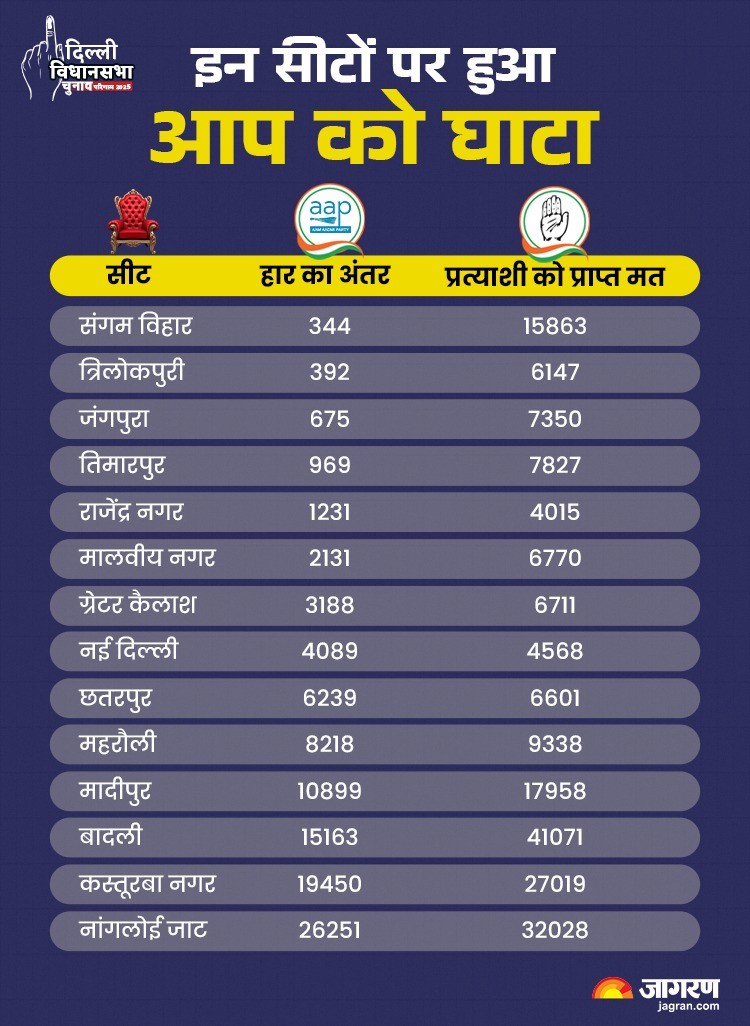Delhi Chunav Result 2025: दिल्ली की 14 सीटों पर कांग्रेस की वजह से हारी 'आप', गठबंधन न करने का भुगता खामियाजा
