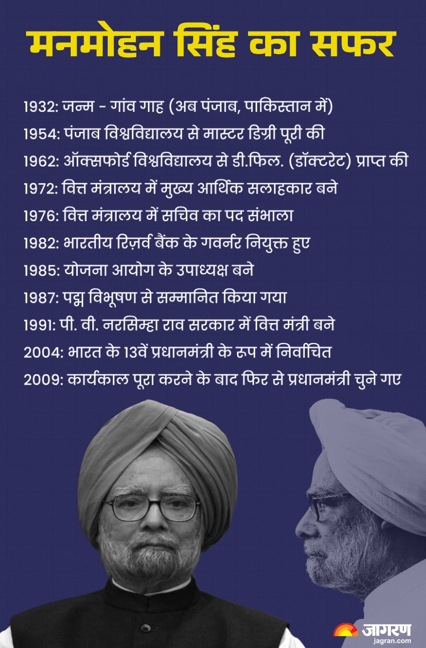 Manmohan Singh Passes away पूर्व प्रधानमंत्री मनमोहन सिंह का 92 वर्ष की उम्र में निधन हो गया। अविभाजित भारत के पंजाब में जन्मे मनमोहन सिंह ने कैम्ब्रिज और ऑक्सफोर्ड जैसे विश्वविद्यालयों से पढ़ाई पूरी की। इसके बाद भारत लौटे तो भारतीय अर्थव्यवस्था की तस्वीर बदल दी। पढ़ें भारत के चौदहवें प्रधानमंत्री रहे मनमोहन सिंह के जीवन का पूरा सफर।