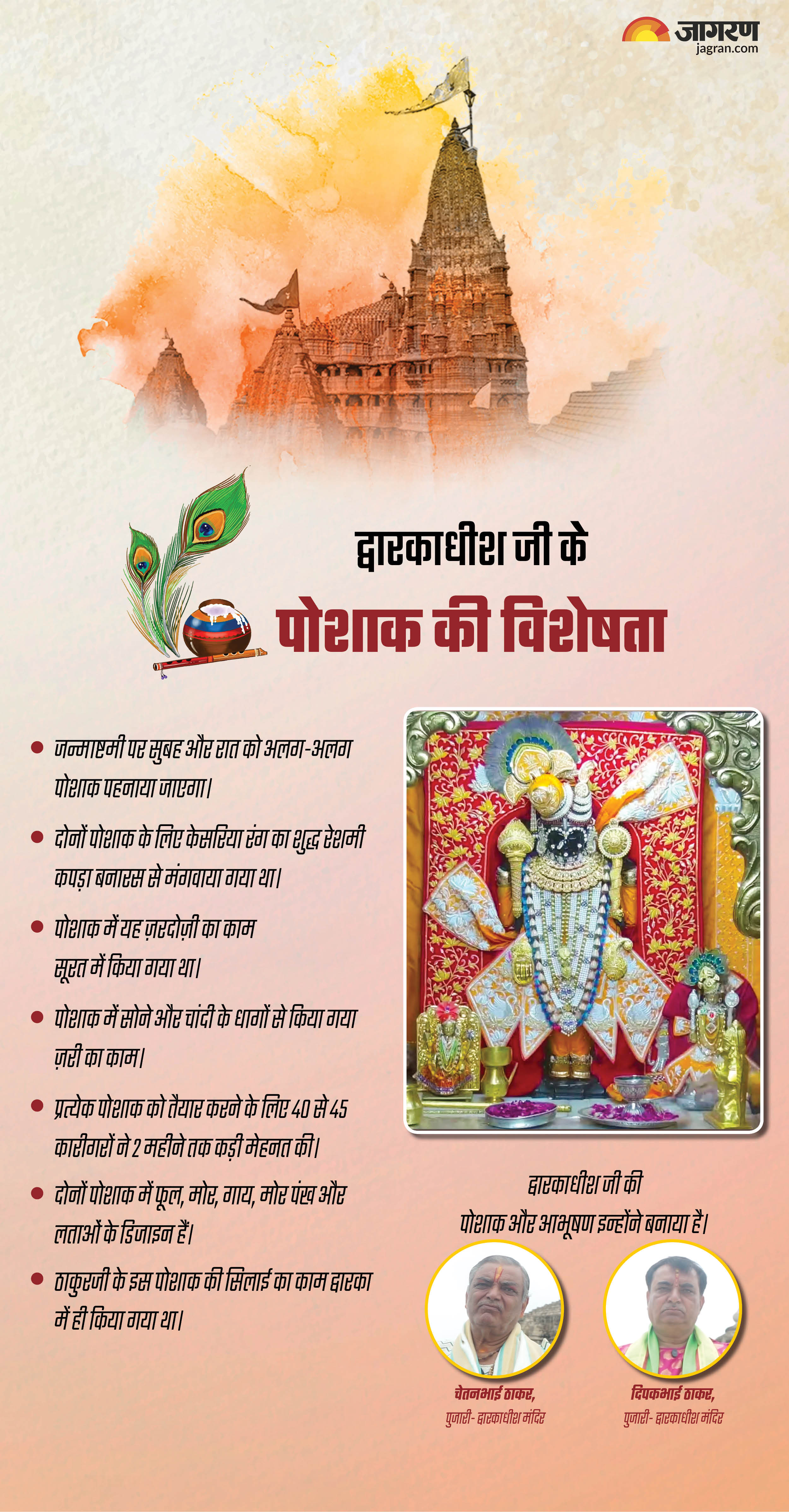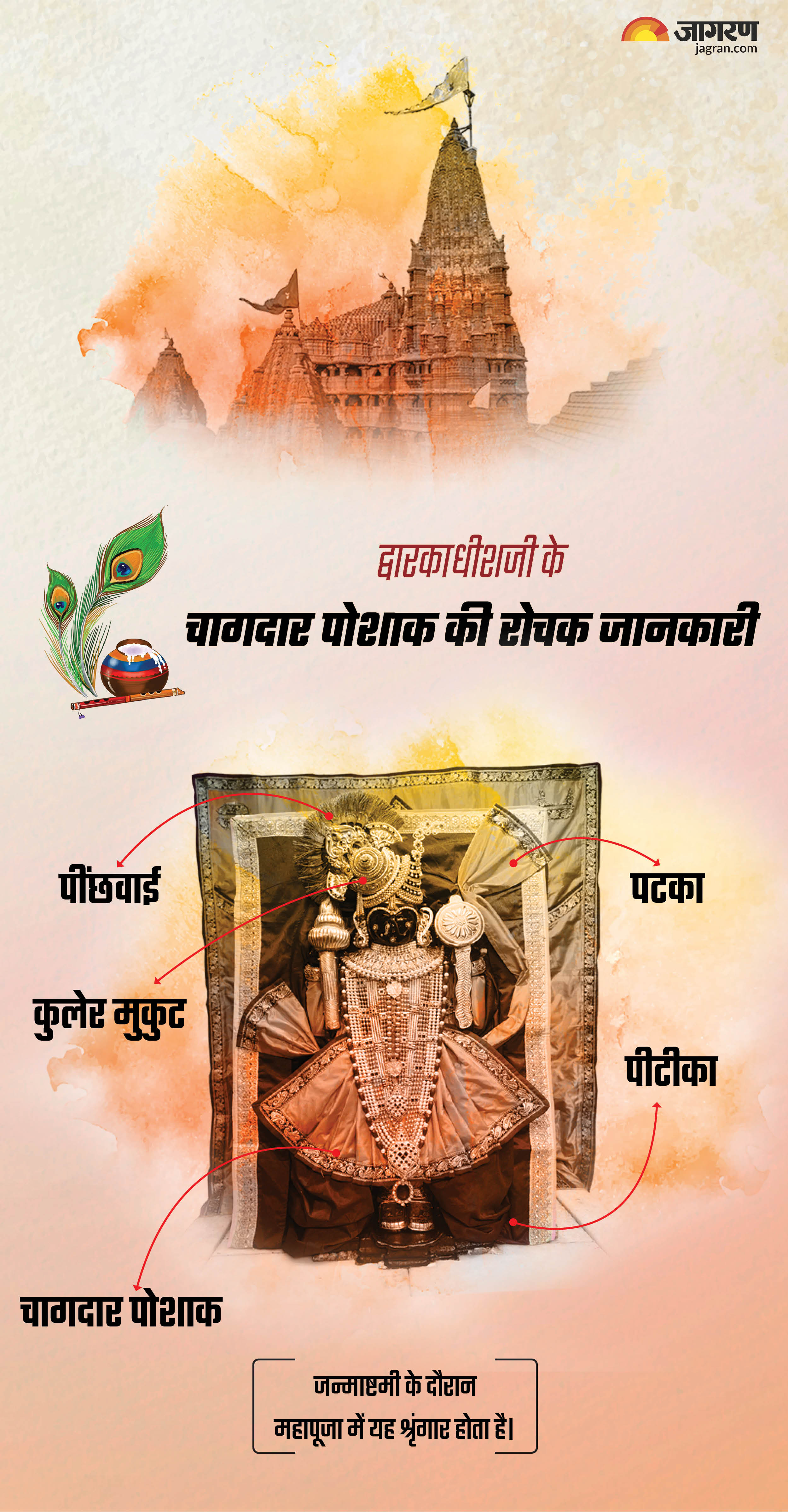 गुजरात: जन्माष्टमी पर सोने-चांदी के तार से बनाया गया द्वारकाधीश का चागदार वाघा, तस्वीरें देख हो जाएंगे मंत्रमुग्ध