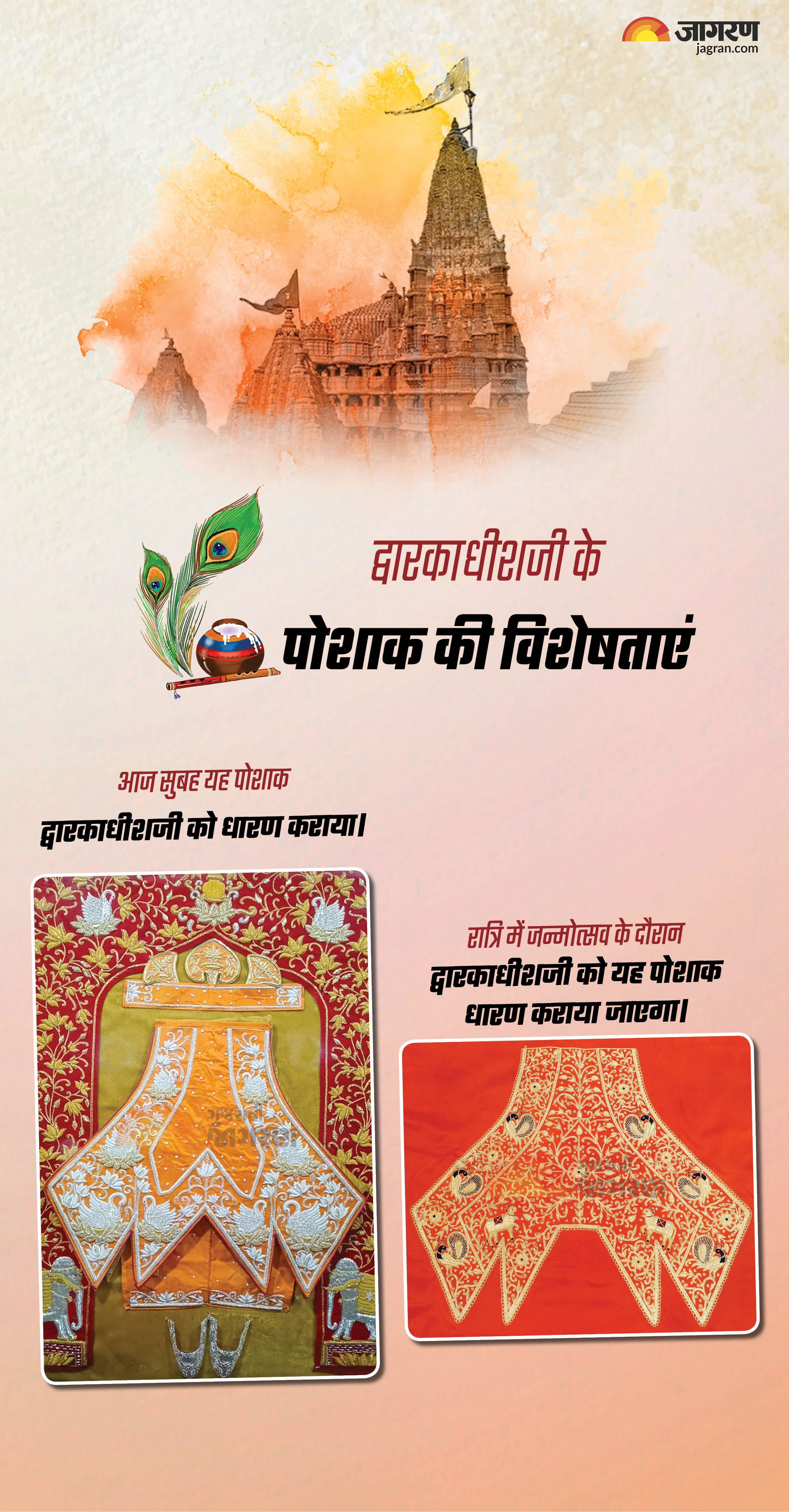 आज पूरे देश में जन्माष्टमी का त्योहार धूमधाम से मनाया जा रहा है। इस अवसर पर द्वारका में भगवान द्वारकाधीश को गुजरात में बने विशेष वाघा और पतिहार पहनाए गए। इन वस्त्रों को विशेष रूप से तैयार किया गया है। यहां भगवान द्वारकाधीश के वाघा और पतिहार के दर्शन करें और निर्माण प्रक्रिया को भी देखें।