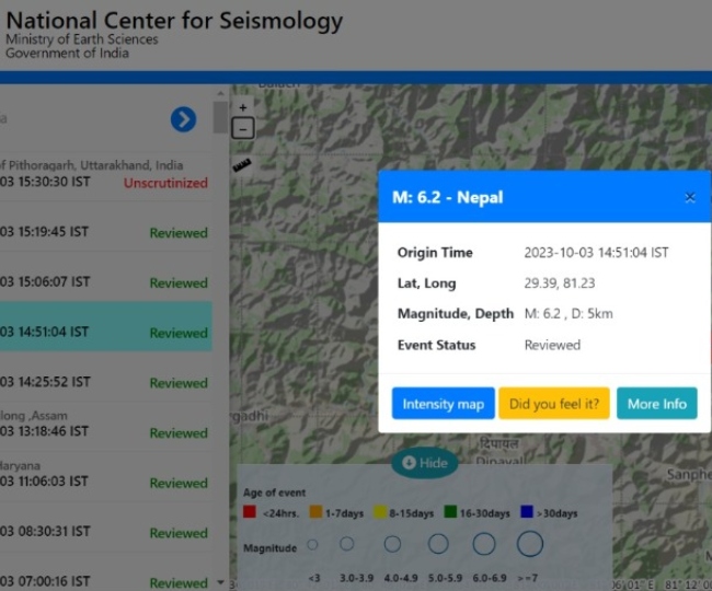 नेशनल सेंटर फॉर सिस्मोलॉजी ने मंगलवार को कहा कि नेपाल में 25 मिनट के अंतराल पर 4.6 और 6.2 तीव्रता के दो भूकंप के झटके महसूस हुए हैं। इस झटके दिल्ली-एनसीआर और उत्तर भारत के कुछ हिस्सों में भी धरती कांपी है।