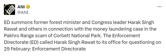 ED ने कांग्रेस नेता हरक सिंह रावत और उनकी बहू को किया तलब, मनी लॉन्ड्रिंग मामले में 29 फरवरी को पूछताछ के लिए बुलाया