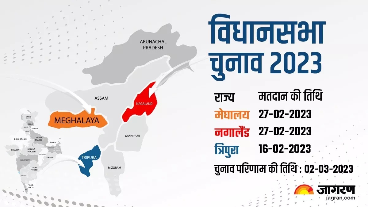 मुख्य चुनाव आयुक्त राजीव कुमार ने जानकारी दी कि त्रिपुरा में 16 फरवरी और मेघालय-नगालैंड में 27 फरवरी को मतदान होगा। इन तीन राज्यों के अलावा महाराष्ट्र की दो सीटों और तमिलनाडु अरुणाचल प्रदेश पश्चिम बंगाल झारखंड और लक्षद्वीप की एक-एक सीट पर 27 फरवरी को उपचुनाव होंगे।