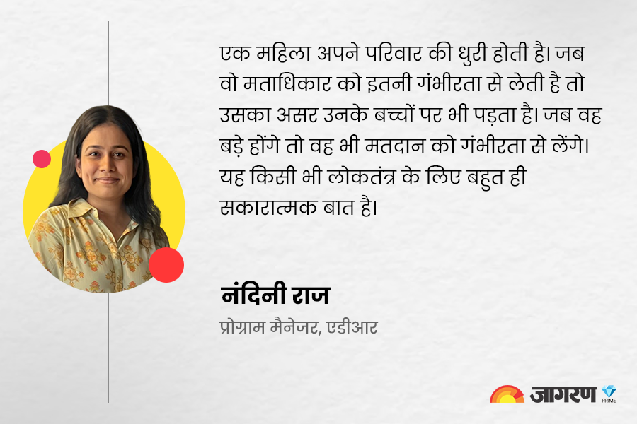 नंदिनी कहती हैं, महिला अपने परिवार की धुरी होती है। जब एक औरत मताधिकार को इतनी गंभीरता से लेती है तो उसका असर उनके बच्चों पर भी पड़ता है। जब वह बड़े होंगे तो वह भी मतदान को गंभीरता से लेंगे। यह किसी भी लोकतंत्र के लिए बहुत ही सकारात्मक बात है।