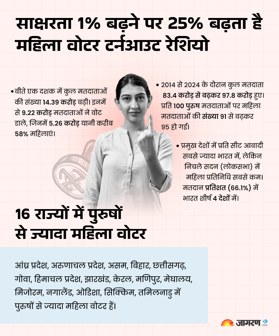 आखिर ऐसा क्यों हो रहा है? इसकी वजह चुनाव आयोग की ओर से हाल में जारी 2024 के चुनावों से जुड़े नवीनतम आंकड़ों में छुपी है। यह आंकड़ा बताता है कि 2019 के लोकसभा चुनावों की तुलना में 2024 के चुनाव में 1.58 करोड़ ज्यादा महिला वोटर्स ने अपने मताधिकार का उपयोग किया। यही नहीं, बीते एक दशक में करीब 9 करोड़ नए मतदाताओं ने अपने मताधिकार का इस्तेमाल किया, इसमें 58% संख्या महिलाओं की है। इस तरह चुनाव में महिलाओं और पुरूष की भागीदारी लगभग बराबर हो गई है।