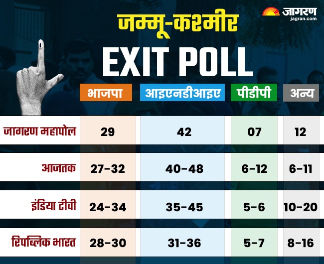 एग्जिट पोल का अनुमान है कि कांग्रेस को 50 से 55 सीटें मिल सकती हैं, जबकि भाजपा 25-26 के आसपास सिमट सकती है। वहीं, जम्मू-कश्मीर में भी बहुमत के लिए 46 सीटों की आवश्यकता है, जिसे नेशनल कान्फ्रेंस और कांग्रेस का गठबंधन छूता दिख रहा है। वहां गठबंधन को 40-45 सीटों का अनुमान है। वहां के चुनावों को थोड़ा अलग दृष्टिकोण से भी देखने की जरूरत है।