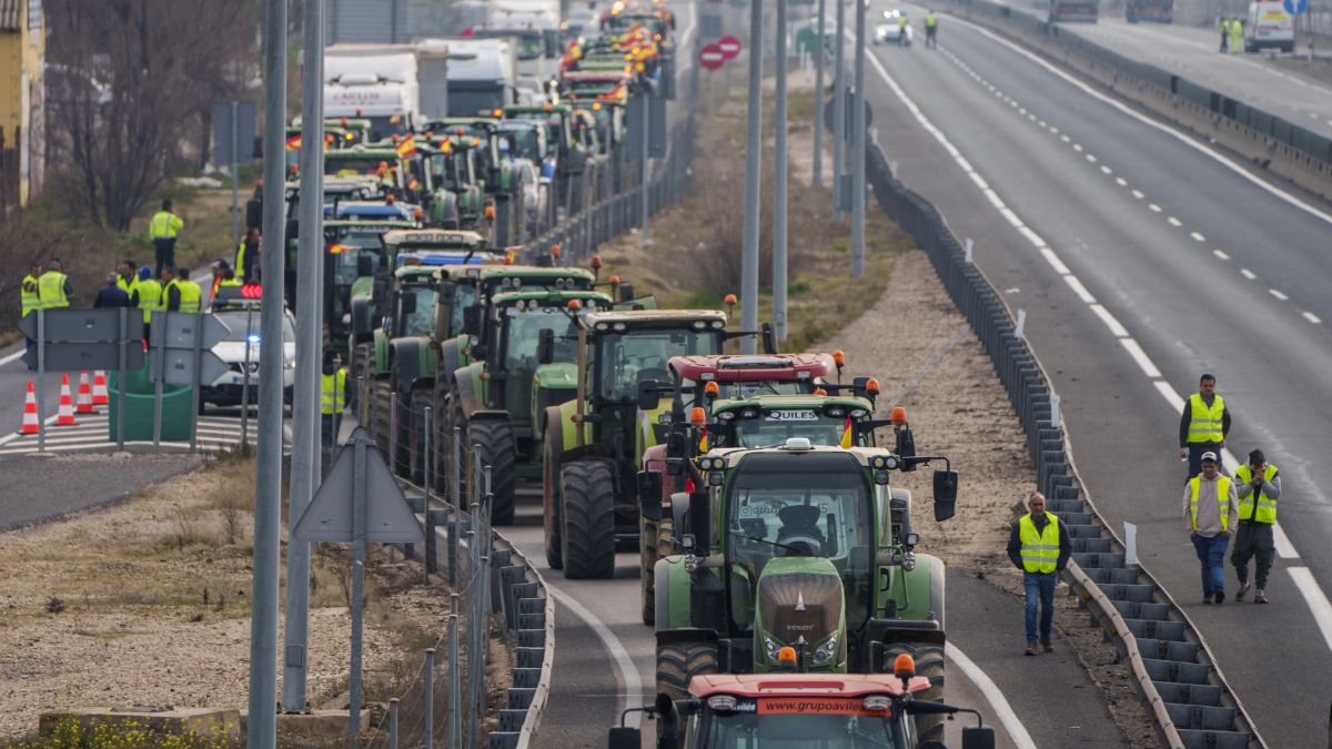 6 फरवरी को स्पेनिश किसानों ने आधिकारिक तौर पर बड़े पैमाने पर देशव्यापी विरोध प्रदर्शन शुरू किया, जिससे दर्जनों राजमार्गों पर यातायात बाधित हो गया। 10 फरवरी को विरोध प्रदर्शन हिंसक हो गया, जब मैड्रिड में किसानों और ट्रक ड्राइवरों के एक समूह के साथ स्पेनिश पुलिस की झड़प हो गई, क्योंकि उन्होंने इसे अवरुद्ध करने के लिए एक मुख्य सड़क तक पहुंचने की कोशिश की। स्पैनिश किसानों ने यूरोपीय संघ के पर्यावरण नियमों और जिसे वे अत्यधिक करों और लालफीताशाही के रूप में देखते हैं, के खिलाफ आवाज उठाई।