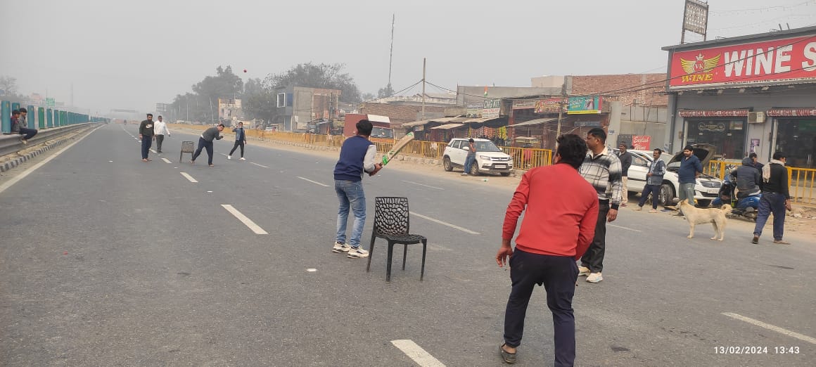 टीकरी बार्डर को कुछ देर के लिए बंद किया गया था। अब फिर से वाहनों के आवागमन के लिए खोल दिया गया है। सिंघु बार्डर सील होने के बाद हाईवे पर क्रिकेट खेलते आसपास के दुकानदार।