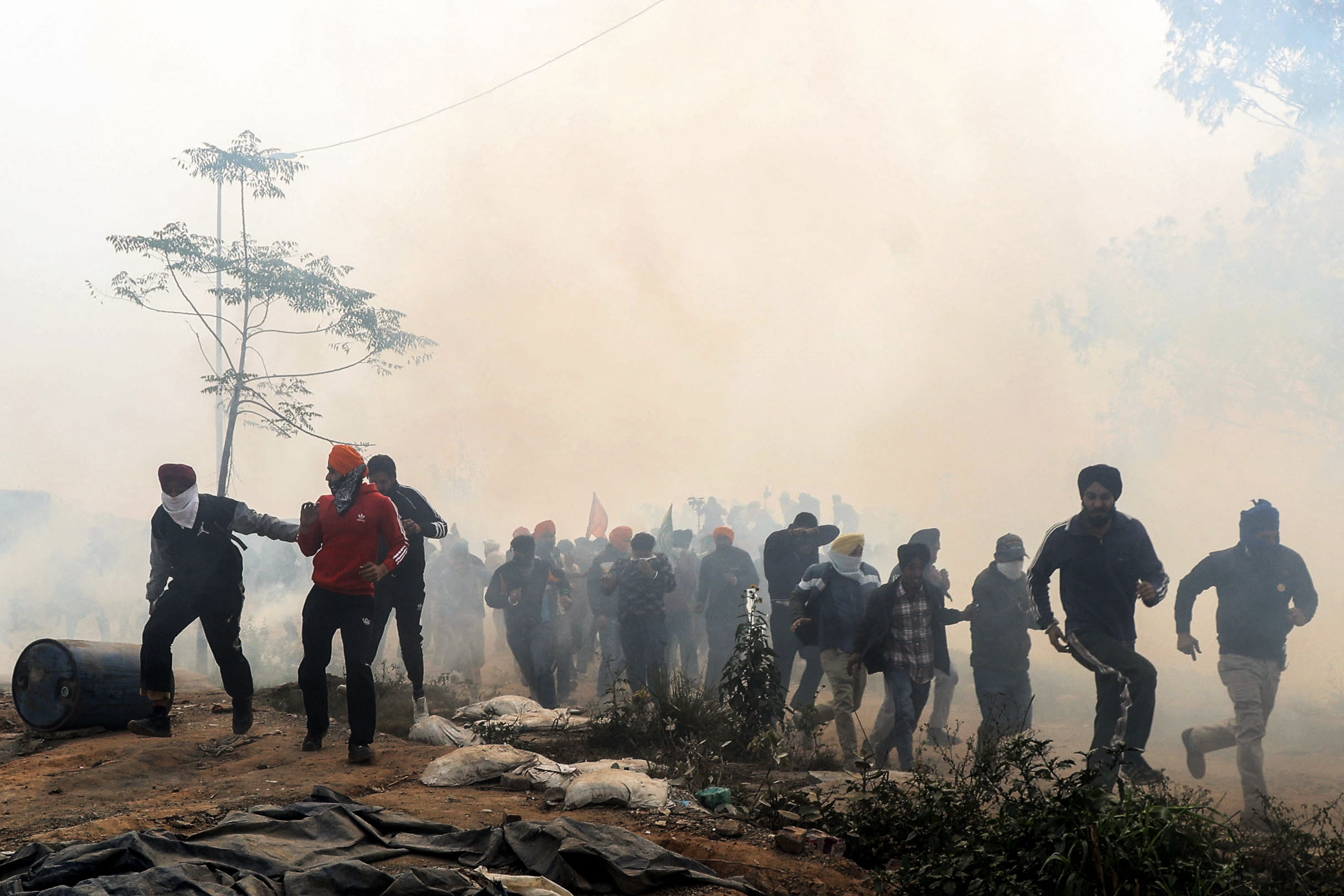 दोपहर को जब हजारों की संख्या में किसान हरियाणा की सीमाओं पर पहुंचे तो पुलिस ने ड्रोन और गन के जरिये आंसू गैस के गोले दागकर हरियाणा में घुसने से रोक दिया।