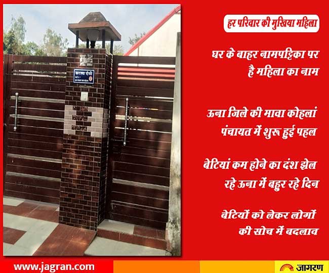 इस पंचायत के साढ़े पांच सौ घरों में महिलाओं के नाम की पट्टिका लगाई गई है। खास बात यह है घरों में ही नहीं बल्कि बाजार में दुकानों पर भी परिवार की महिला व बेटियां के नाम पर बोर्ड लगाए गए हैं। कम लिंगानुपात वाले देश के चिन्हित 100 जिलों में शामिल ऊना में इस तरह की कवायद बेटियों के प्रति सोच बदलने में बड़ा कदम मानी जा रही है।