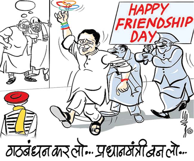 आज का कार्टून सियासत में गठबंधन की नीति पर आधारित है। इसके माध्यम से मित्रता दिवस को बेहद रोचक ढंग से जोड़ा गया है।