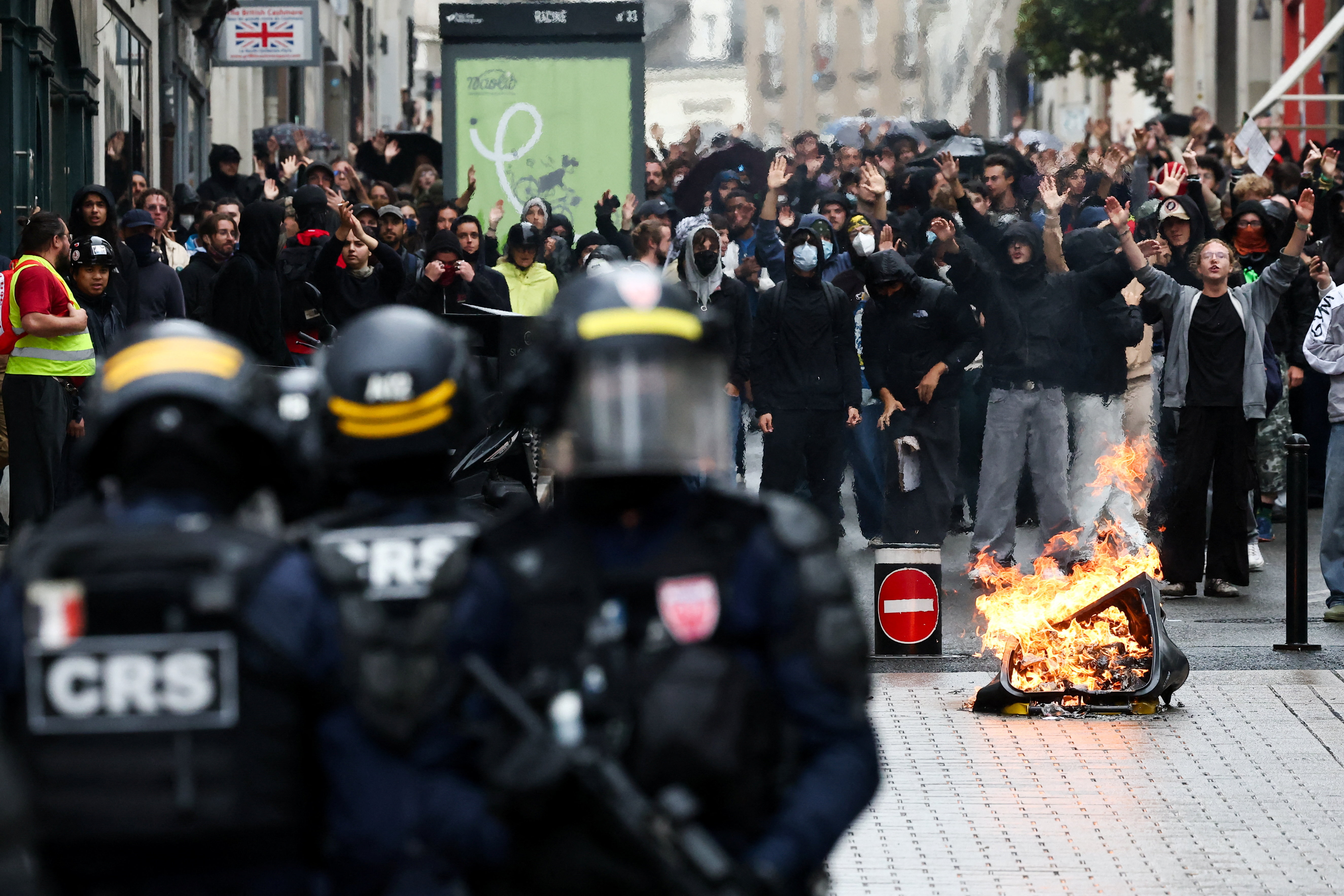 बुधवार को 'ब्लॉकन्स टाउट' यानि (सब कुछ रोको) आंदोलन पेरिस की सड़कों पर फैल गया। प्रदर्शनकारियों ने सड़कें जाम कर दीं और बसों में आग लगा दी। गृह मंत्रालय के अनुसार, इस अशांति के बीच कम से कम 200 लोगों को गिरफ्तार किया गया है। इस विरोध प्रदर्शन की वजह से रेलवे और बिजली लाइन को काफी नुकसान पहुंचा है।