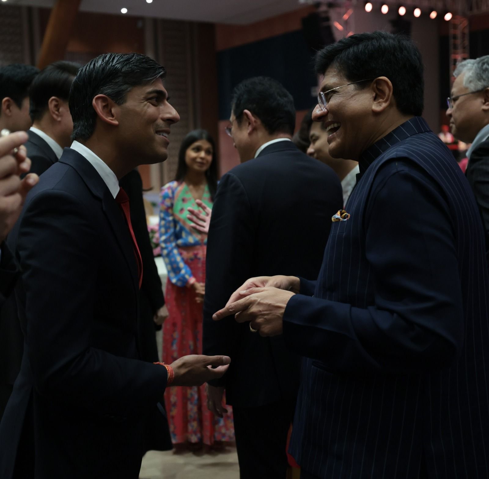 ब्रिटेन के प्रधानमंत्री ऋषि सुनक और केंद्रीय मंत्री पीयूष गोयल के बीच हंसी-मजाक